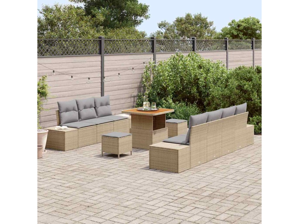 Sada zahradních pohovek s polštářem 10 pcs Béžová Poly ratan [3364697]