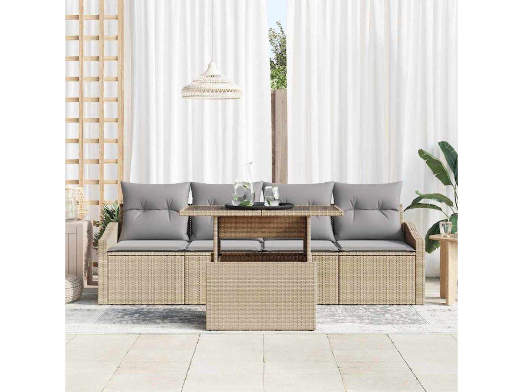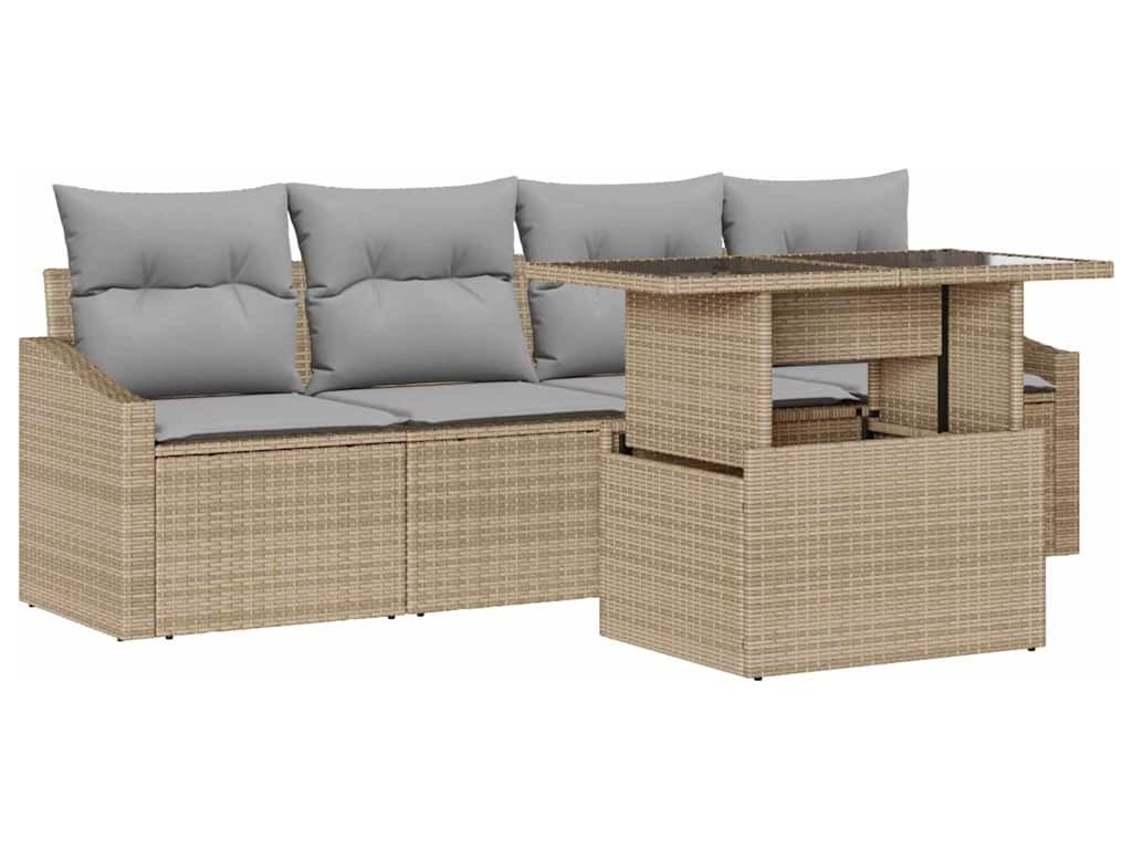 Sada zahradních pohovek s úložištěm 5 pcs Béžová Poly ratan [3357643]
