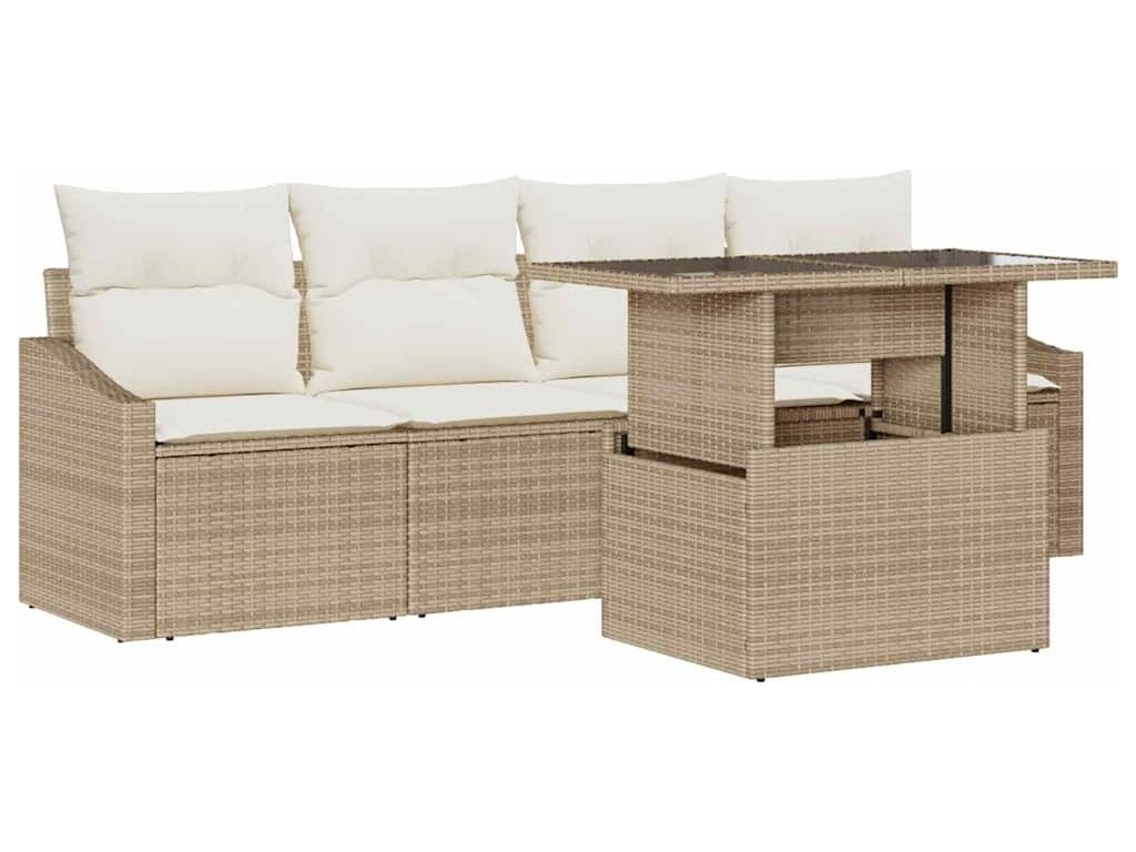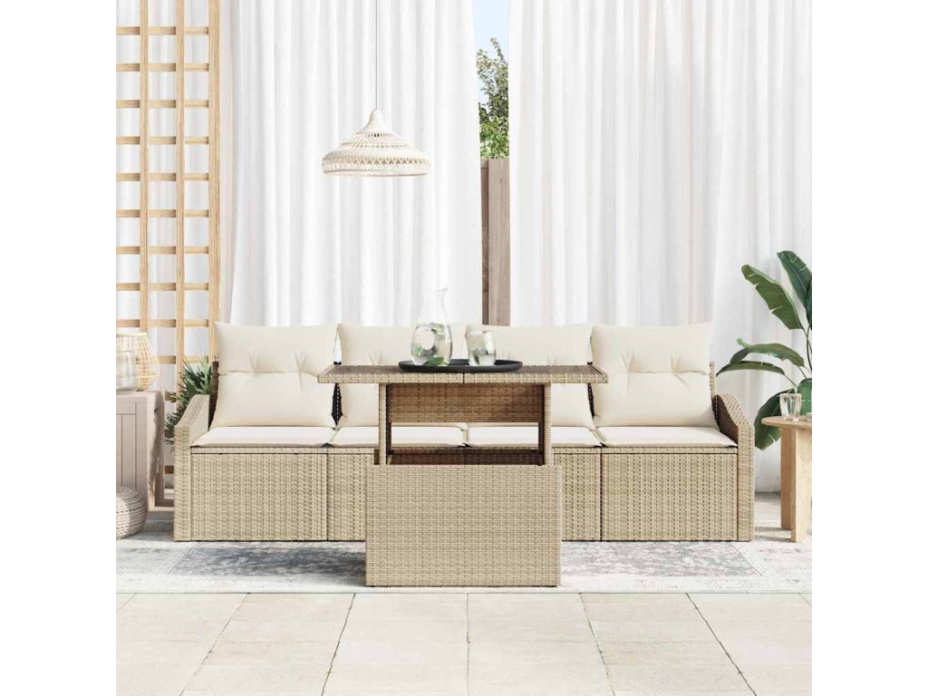 Sada zahradních pohovek s úložištěm 5 pcs Béžová Poly ratan [3357644]