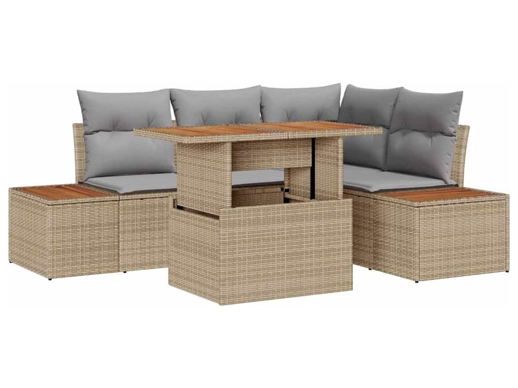 Sada zahradních pohovek s úložištěm 5 pcs Béžová Poly ratan [3358804]