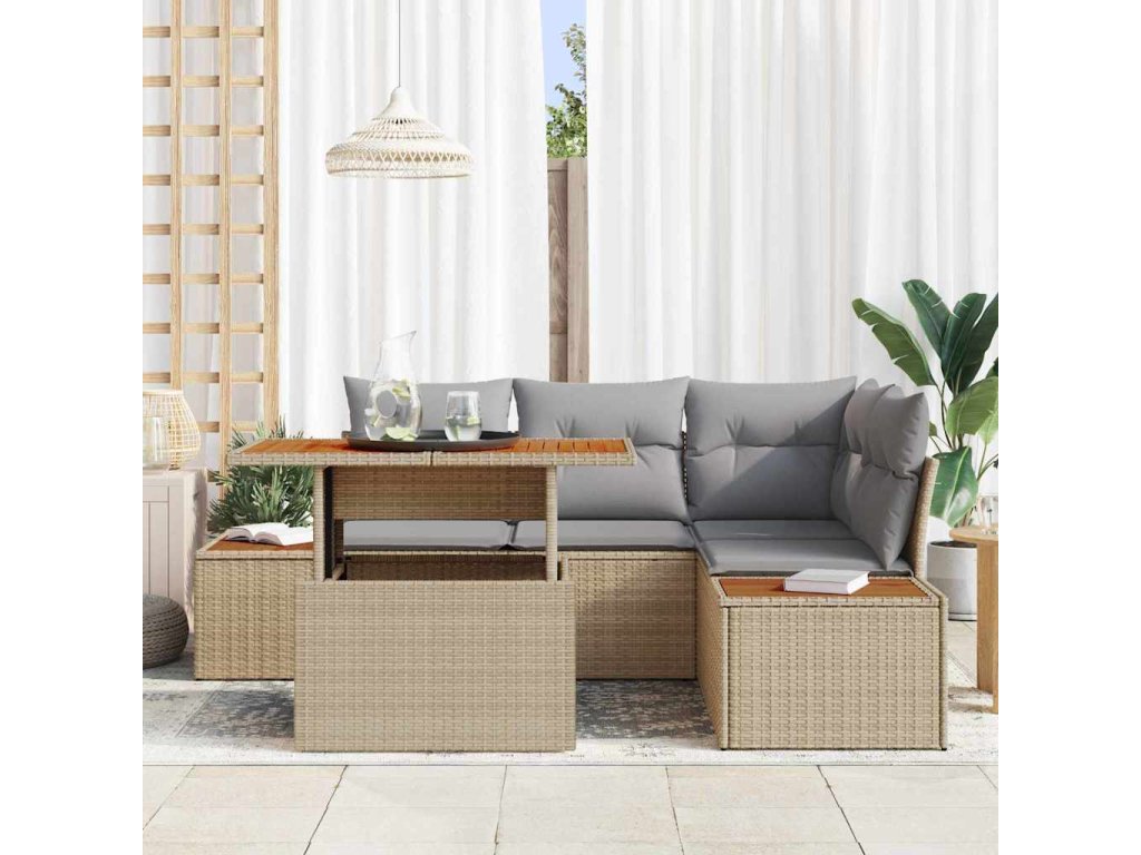 S tímto moderním ratanovým setem zažiješ styl v tvém venkovním prostoru. Je perfektní pro zahradní a terasové použití, poskytuje pohodlné sezení pro pět lidí a spojuje praktické funkce s moderním vzhledem. Ideální pro večírky nebo relaxaci, tento set kombinuje eleganci s pohodlím díky svému ergonomickému designu.