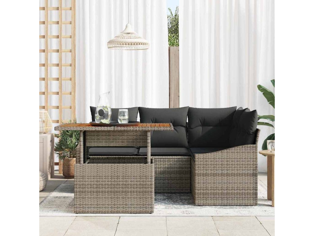 Sada zahradních pohovek s úložištěm 5 pcs Šedá Poly ratan [3358568]