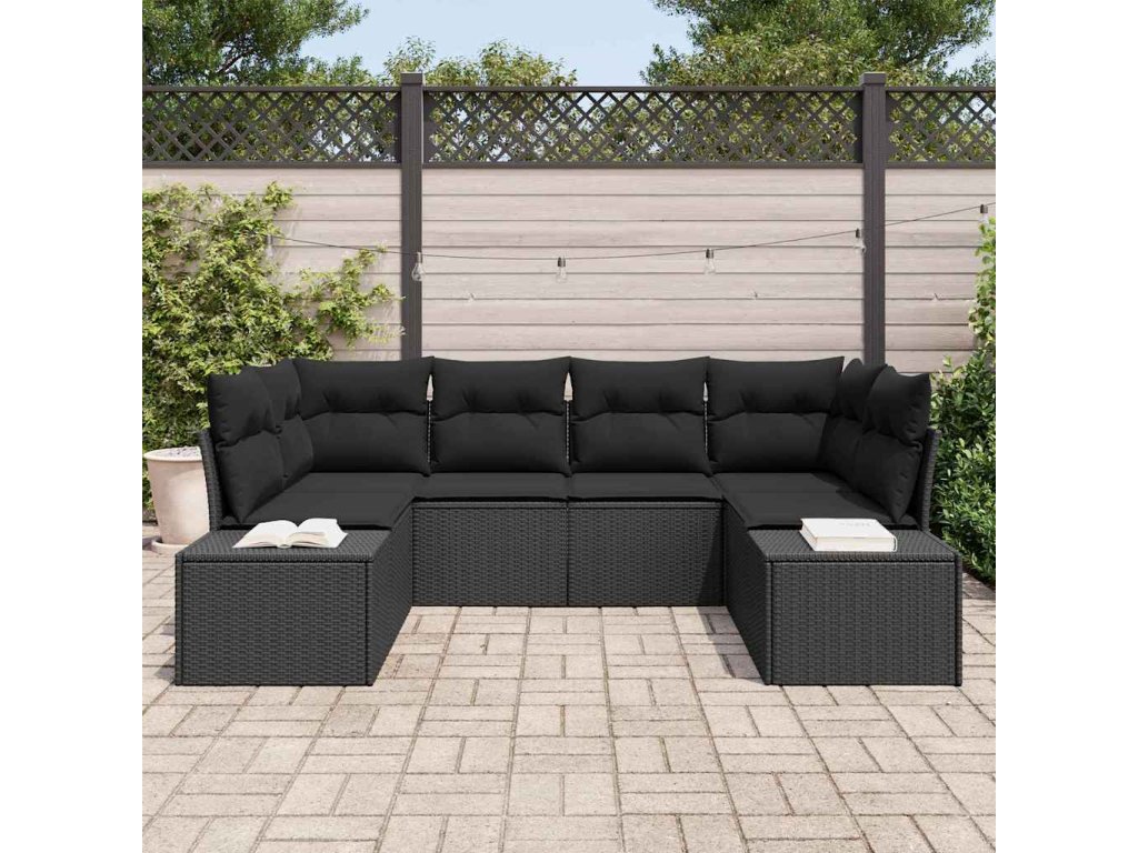 Sada zahradních pohovek s úložištěm 6 pcs Černá Poly ratan [3355872]