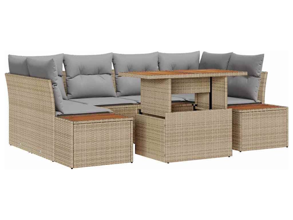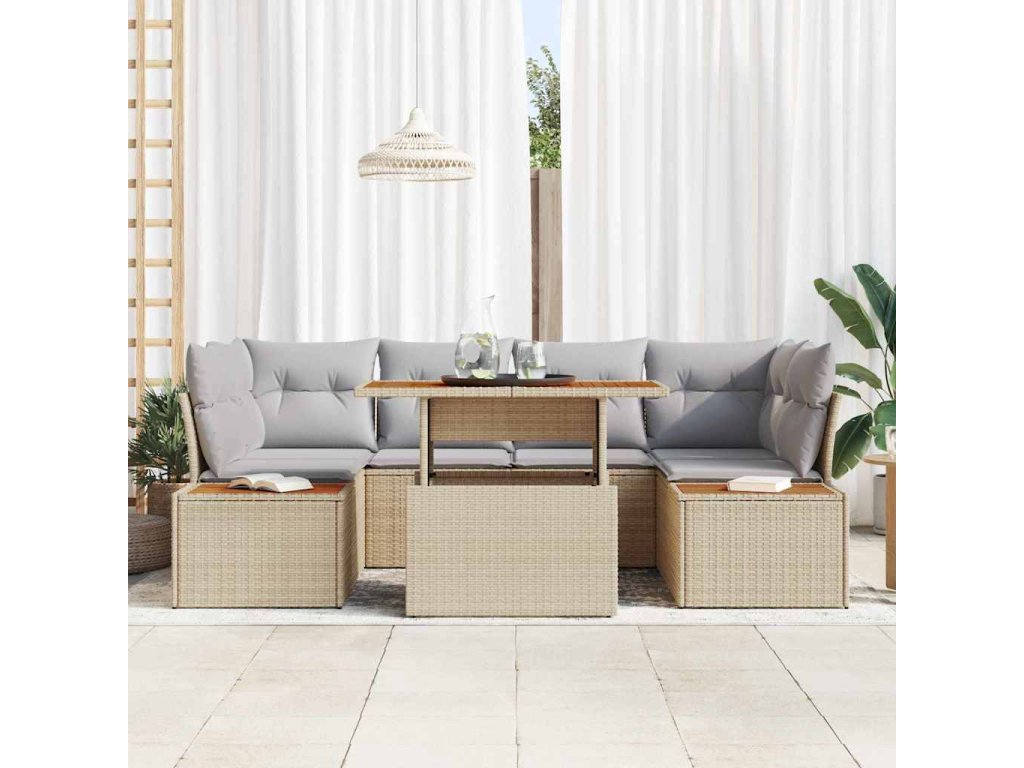 Sada zahradních pohovek s úložištěm 7 pcs Béžová Poly ratan [3358774]