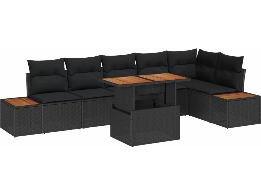 Sada zahradních pohovek s úložištěm 7 pcs Černá Poly ratan [3358812]