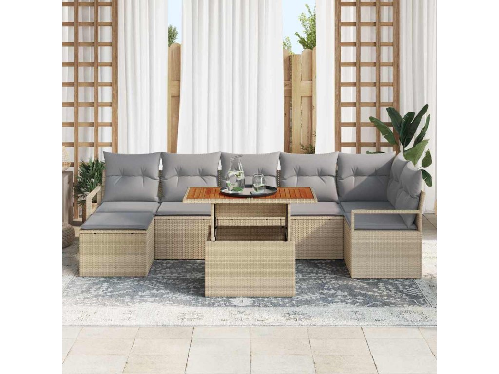 Sada zahradních pohovek s úložištěm 8 pcs Béžová Poly ratan [3358478]
