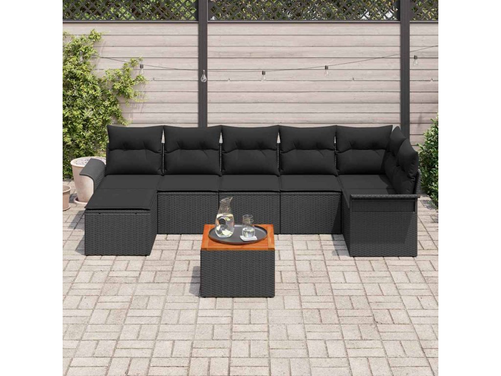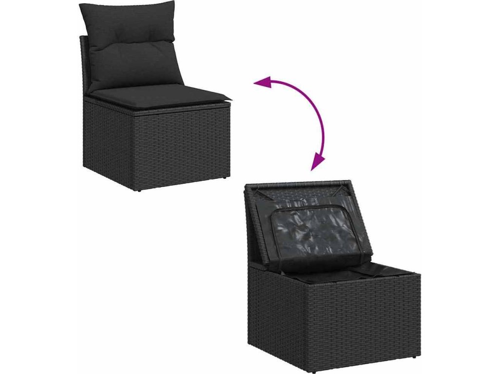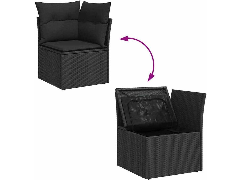 Sada zahradních pohovek s úložištěm 8 pcs Černá polyratan [3356028]