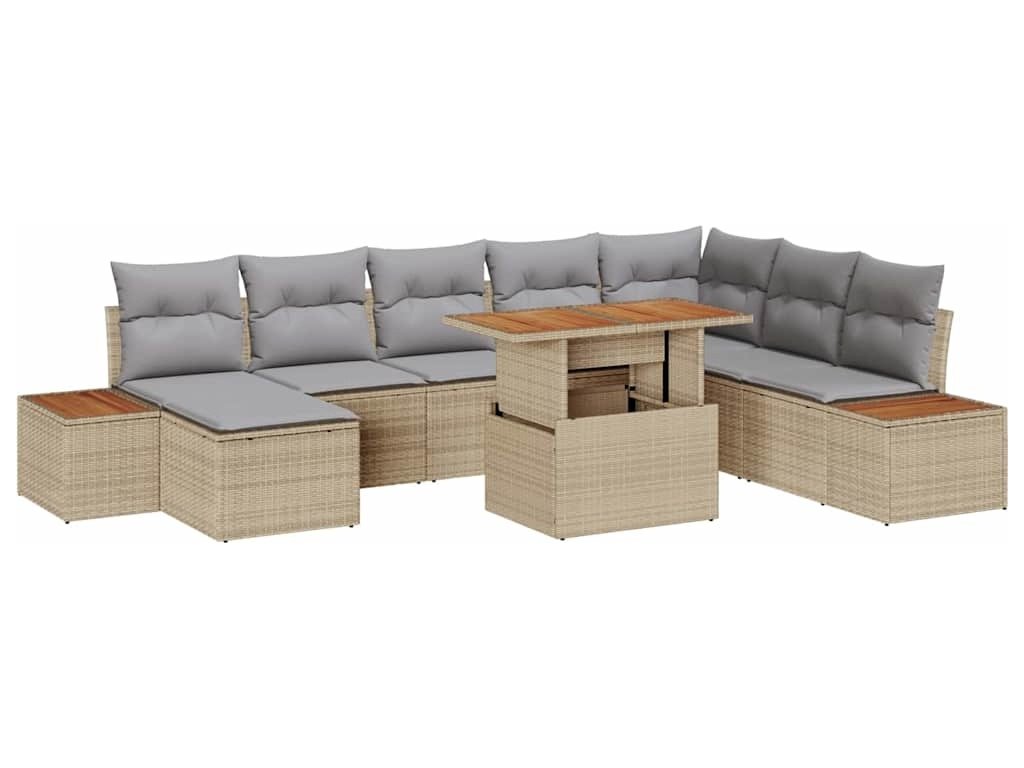 Sada zahradních pohovek s úložištěm 9 pcs Béžová Poly ratan [3358834]