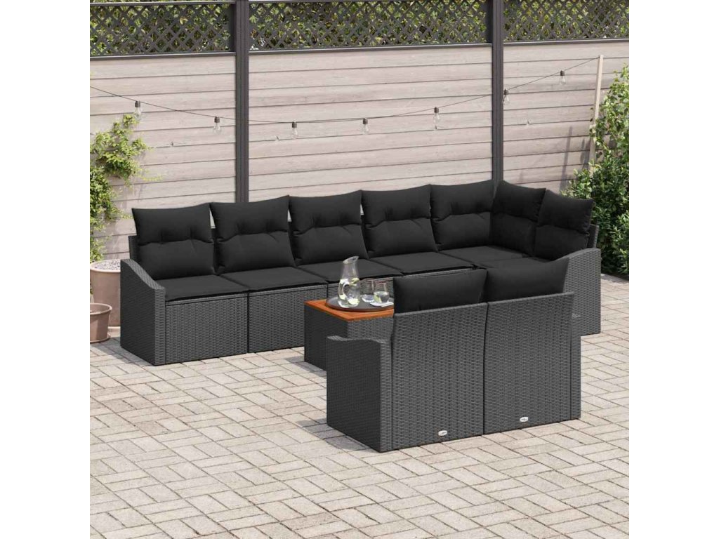 Sada zahradních pohovek s úložištěm 9 pcs Černá polyratan [3356518]