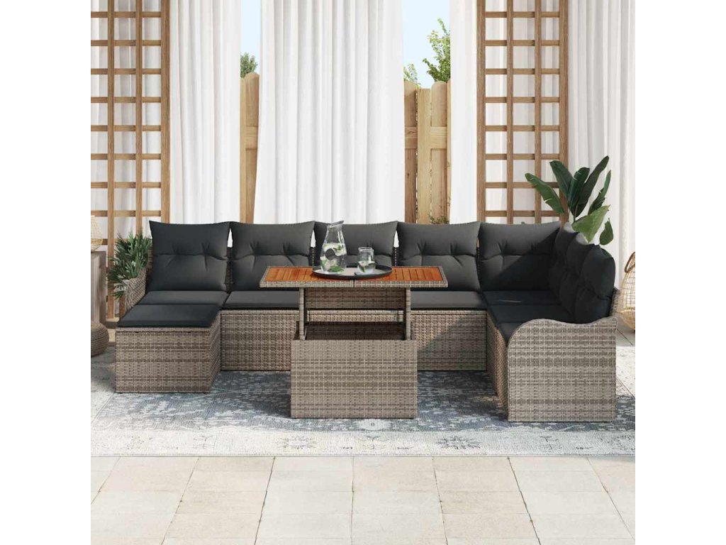 Sada zahradních pohovek s úložištěm 9 pcs Šedá Poly ratan [3358232]