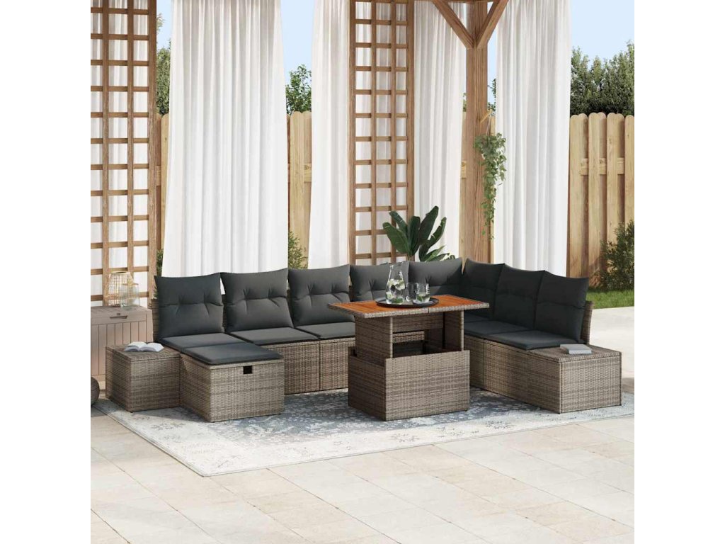 Sada zahradních pohovek s úložištěm 9 pcs Šedá Poly ratan [3361398]
