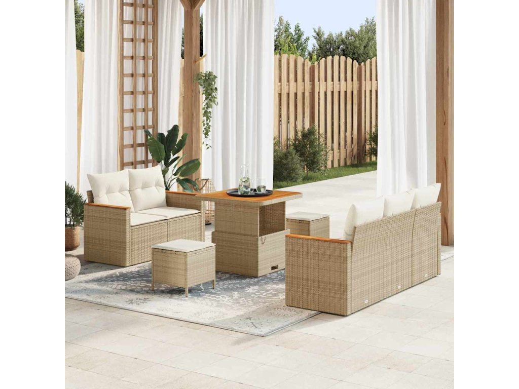 Sada zahradních pohovek s polštářem Béžová Poly ratan [3364936]