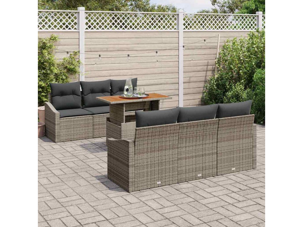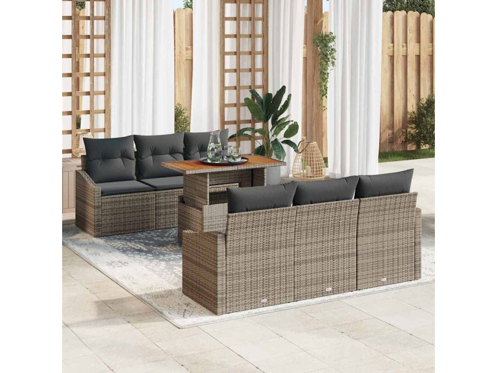 Sada zahradních pohovek s polštářem 7 pcs Šedá a hnědá [3349782]