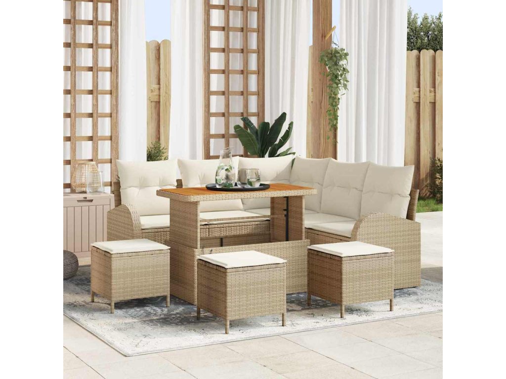 Sada zahradních pohovek s polštářem 9 pcs Béžová polyratan [3362401]