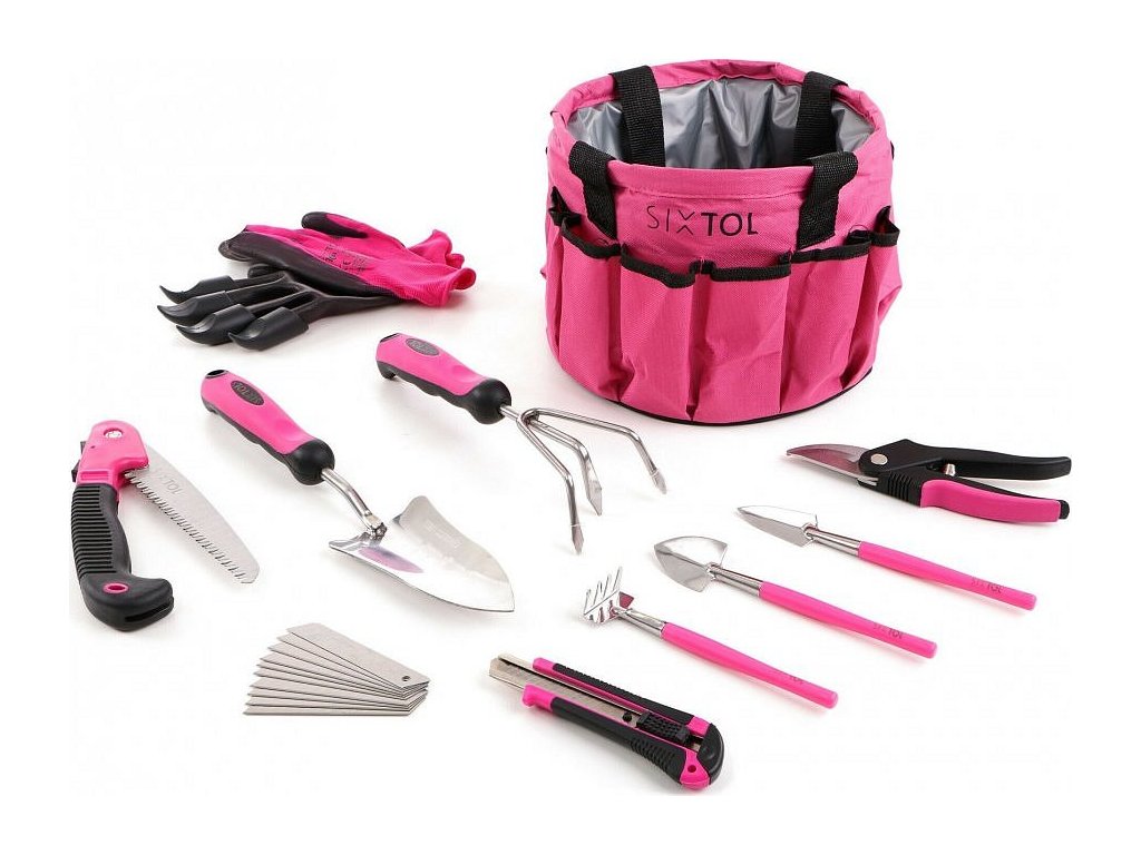 Pojďte pečovat o záhony s praktickou sadou zahradního nářadí Sixtol Garden Pink. V brašně najdete celkem 10 kusů náčiní pro každého zahradníka a pěstitele. Využijete ji pro snadný přenos nářadí, ale díky její vodotěsnosti také jako kýbl na vodu, hlínu, vytrhaný plevel a další věci.