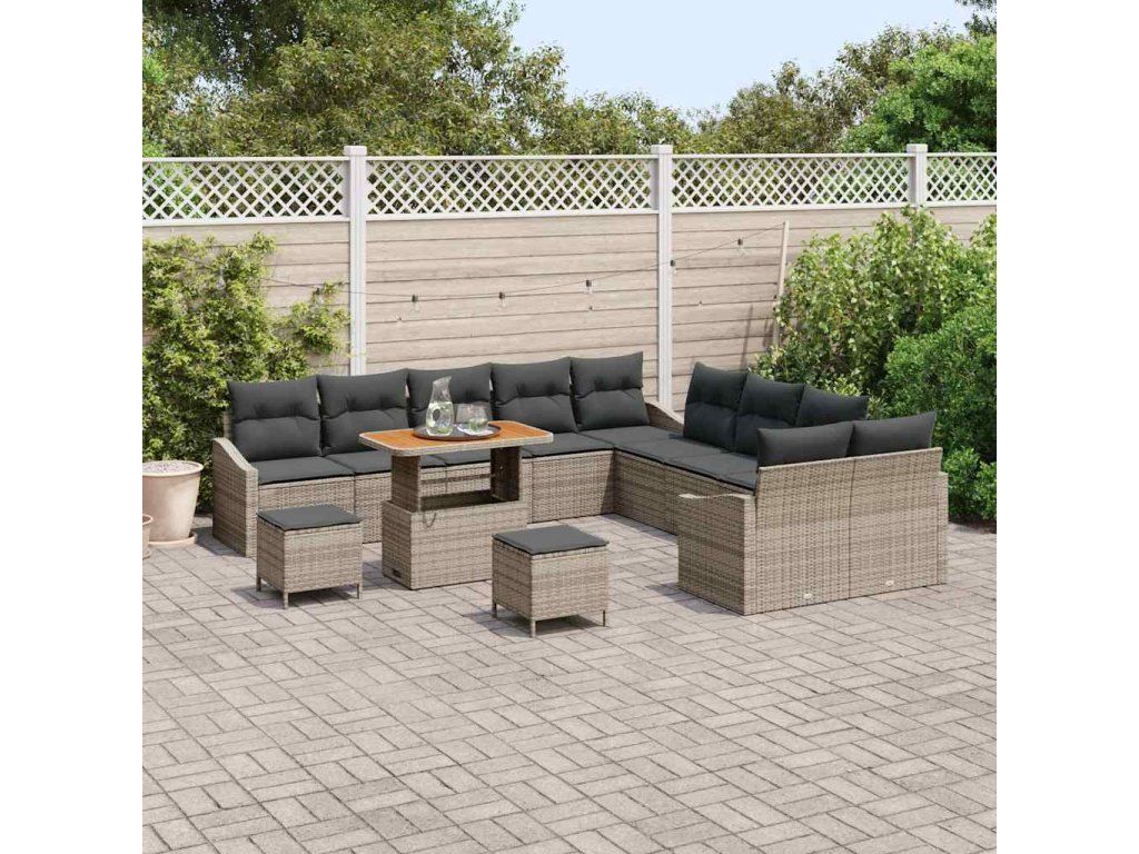Sada zahradních pohovek s polštářem 13 pcs Šedá Poly ratan [3364668]