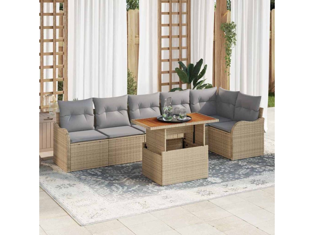 Sada zahradních pohovek s úložištěm 7 pcs Béžová Poly ratan [3358205]