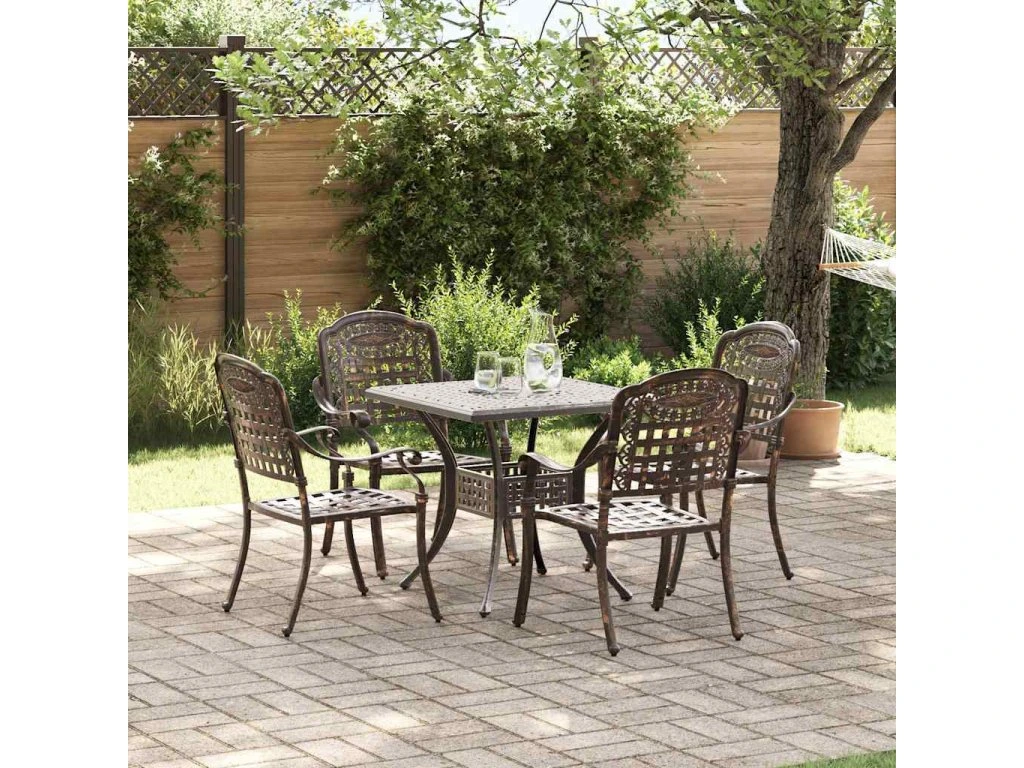 - Univerzální komponenty: Všechny kusy, od pohodlných židlí až po pevný stůl, jsou vyrobené z hliníku, takže všechno pěkně ladí a vydrží. Ať už organizuješ zahradní párty nebo si jen užíváš klidný čaj, každý kus skvěle funguje a přidává kouzlo tvému venkovnímu prostoru.