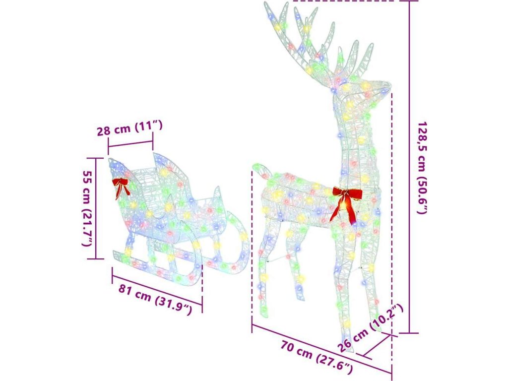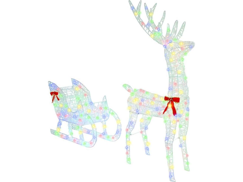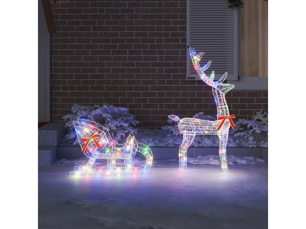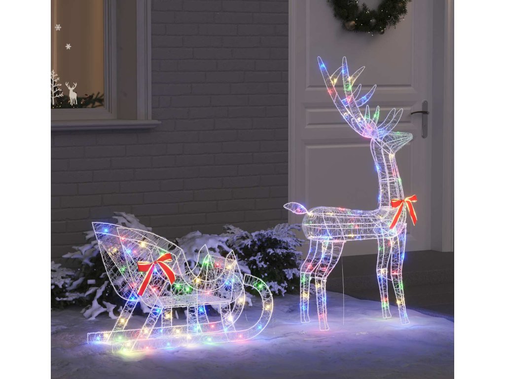 Toto moderní sněžné spřežení sobů přináší vánoční kouzlo do vašeho domova. Je vyrobené z odolného akrylu a má minimalistický design obohacený o klasickou červenou mašli pro sváteční atmosféru. Vhodné pro vnitřní a kryté venkovní prostory, je ideálním doplňkem pro jakýkoli vánoční motiv a spojuje moderní jednoduchost s tradiční elegancí. Představte si, jak tento kousek rozjasňuje vaše rodinné setkání svým nádherným vzhledem a vytváří atmosféru klidu i radosti ve vašem obývacím pokoji.