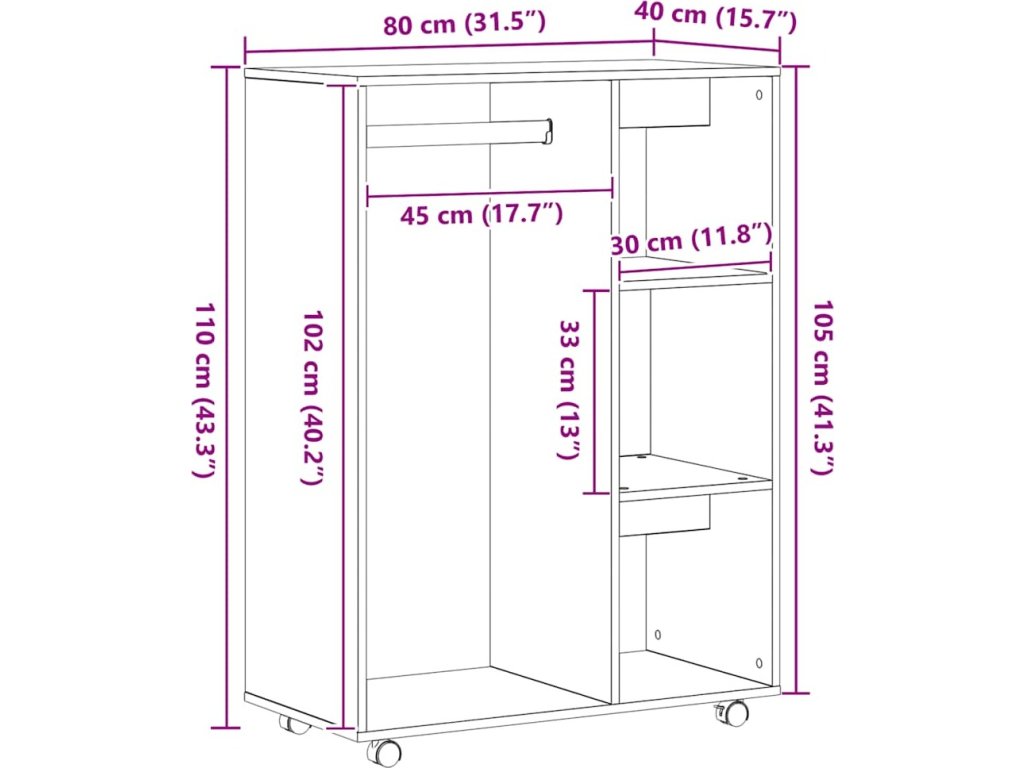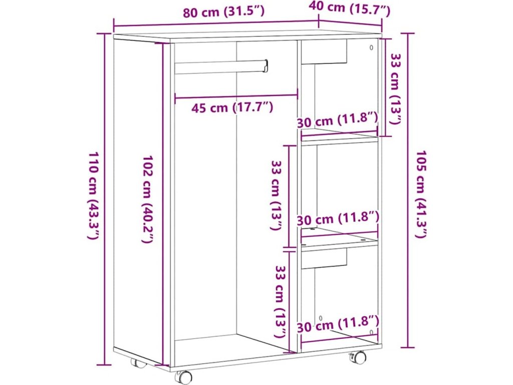 - Rozměry: 80 x 40 x 110 cm (D x Š x V)