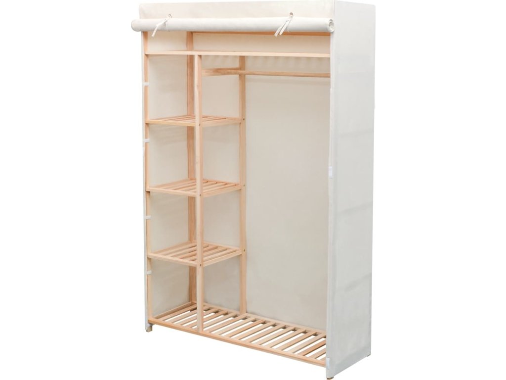 Látková skříň má 5 polic, kam si můžete odložit boty, svetry, kalhoty, čepice, kabelky, atd. Vedlejší oddíl disponuje závěsnou tyčí, a je proto ideální pro skladování kabátů, šatů apod. Skříň má látkový kryt a závěs, který se sice lehko otevírá, ale přitom nepropustí dovnitř prach.