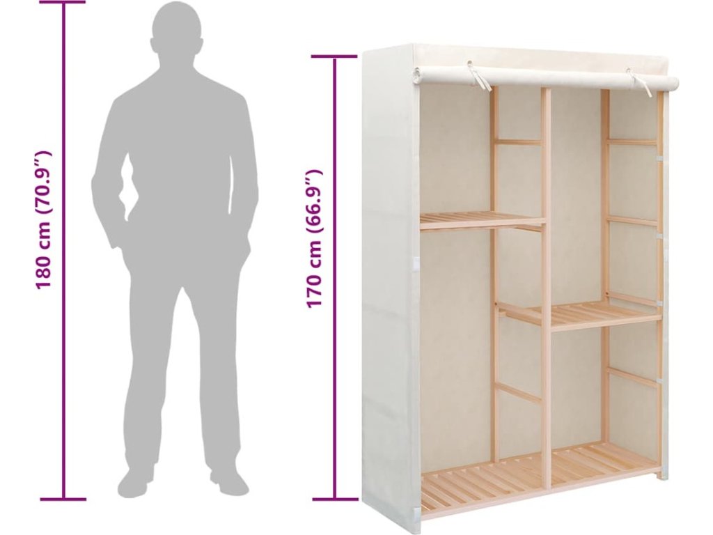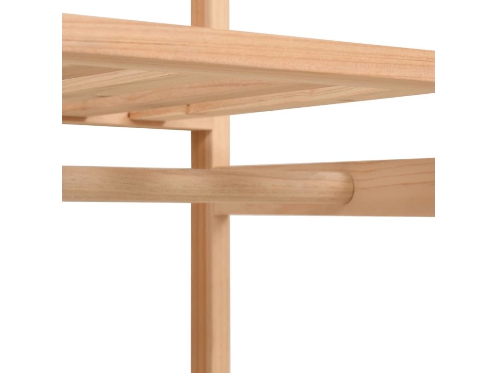 Do každé ze 3 úrovní si můžete ukládat oblečení, ručníky nebo obuv. Ve skříni je též tyč, na kterou si můžete zavěsit halenky, košile, kalhoty nebo bundy. Dřevěný rám skříně je stabilní. Montáž je snadná.