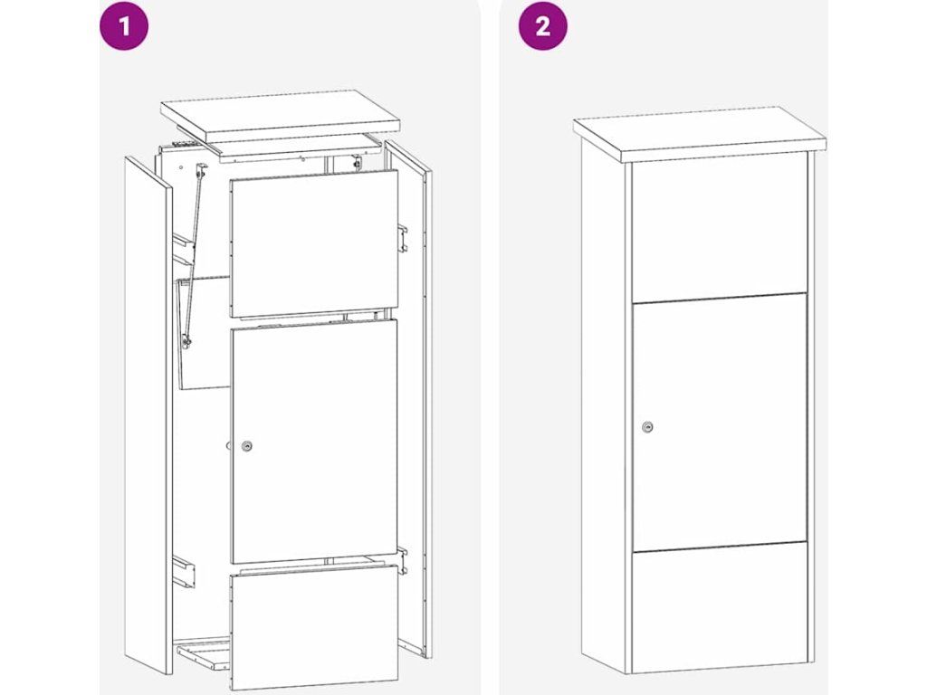 - Pohodlné dveře Dveře na pantech usnadňují vkládání a vyzvedávání zásilek. Jejich pevná konstrukce zajišťuje hladký chod, zatímco ergonomické rukojeti nabízejí dobrý úchop při manipulaci s balíčky.