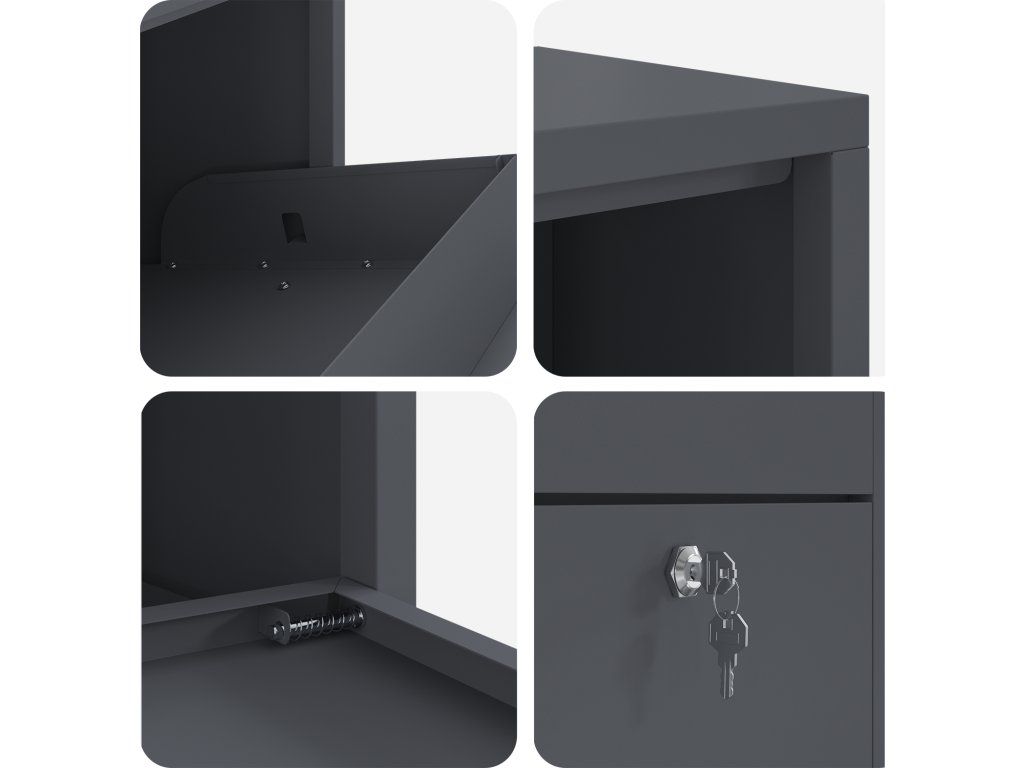 - Robustní zámkový mechanismus: Tato poštovní schránka má spolehlivý zámek na klíč, který nabízí pokročilou úroveň zabezpečení. Budete mít klid, že vaše dodávky jsou v bezpečí, dokud si je nevyzvednete. Zámek brání krádeži, takže můžete odejít ven bez obav.