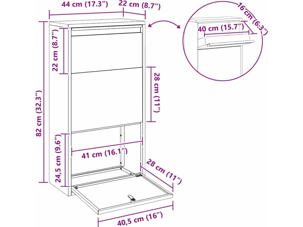 Tato moderní poštovní schránka na balíky spojuje styl s funkčností a bezpečně ukrývá vaše zásilky. Jestli máte rádi současný design, skvěle zapadne do zahrady nebo na terasu a nezkazí vám dekoraci. Obdélníkový tvar a elegantní stříbrné úchyty dodají prostoru šmrnc, zatímco chrání obsah. Ideální pro zaneprázdněné majitele domů, kteří potřebují spolehlivý a stylový prostor pro poštu a balíky, slibuje pohodlí a klid na duši.