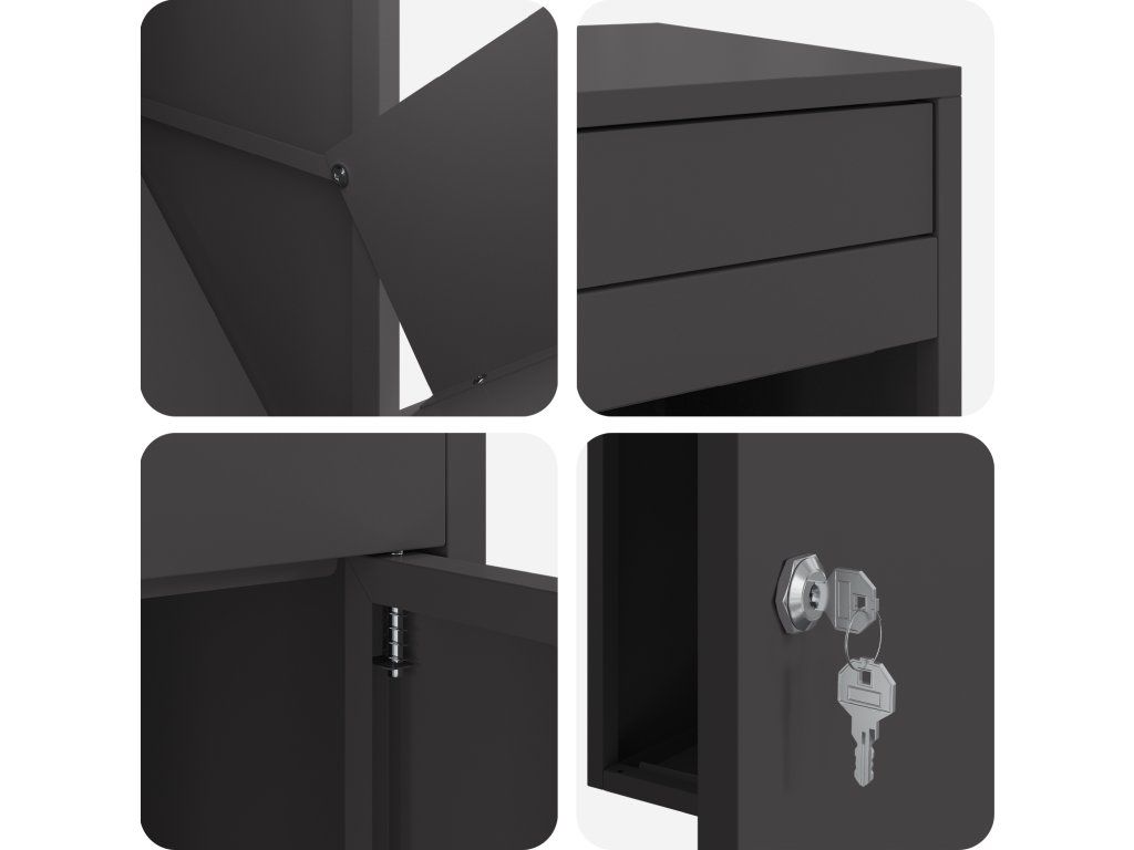 - Odolné materiály: Tento box na zásilky je vyroben z odolné oceli, což zajišťuje dlouhou životnost a klid. Díky tomu má moderní vzhled a skvěle zapadne do každého domova.