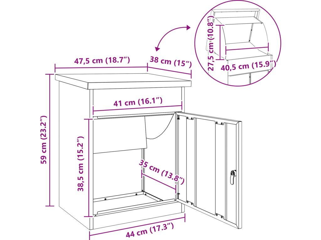 Schránka na balíky s úložištěm Rezavá 47.5 x 38 x 59 cm [874946]