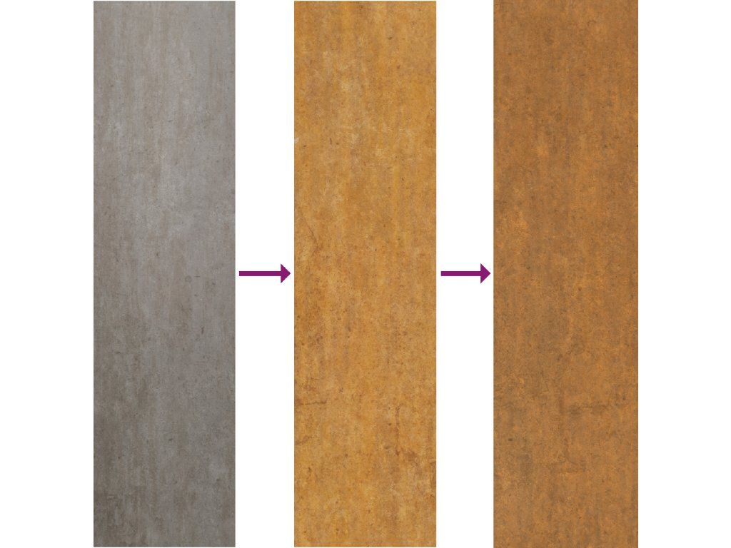 - Tento produkt ještě není zrezivělý, a když jej obdržíte, má normální kovovou barvu, která časem zreziví. Proces rezivění můžete urychlit postříkáním mýdlovou vodou a slanou vodou. Aby vaše oblečení zůstalo beze skvrn, vyhněte se kontaktu se vznikající vrstvou rzi.