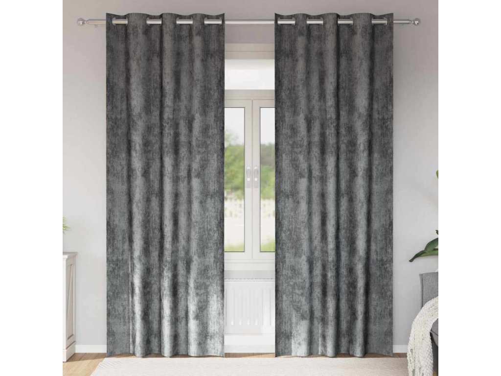 Sametové závěsy se záclonami 2 pcs Šedá 225 x 140 cm samet [4107655]