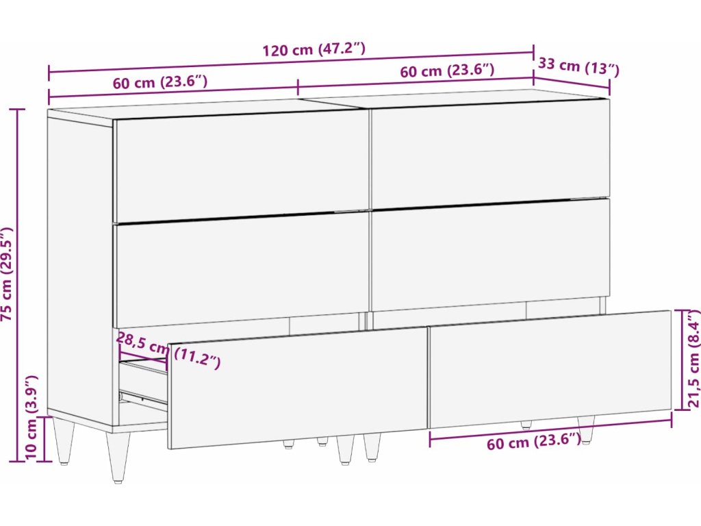 - Robustní konstrukce Vyrobena z masivního mangového dřeva, tahle skříň je navržena tak, aby vydržela každodenní používání, takže si po letech zachová svůj skvělý vzhled a výkon.