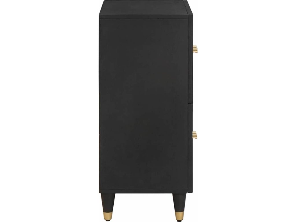 - Součásti: Dveře na pantech usnadňují přístup k úložným oddílům. Mosazné knoflíky nejenže zpříjemňují otevírání, ale dodávají elegantní dotek s lesklým zlatem, které ladí s moderním stylem.