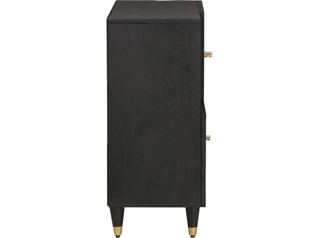 - Součásti: Všechny úchyty a nohy jsou z mosazi, což dodává luxusní dotek a zvyšuje funkčnost i vzhled. Design sloupkových nohou zajišťuje stabilitu, skříň je tak ideálním společníkem pro jakýkoliv domov, a to i při větším zatížení.
