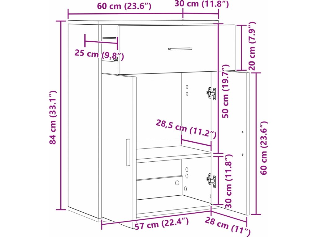 Servírovací skříň se zásuvkou Artisanový dub 60 x 30 x 84 cm [871426]