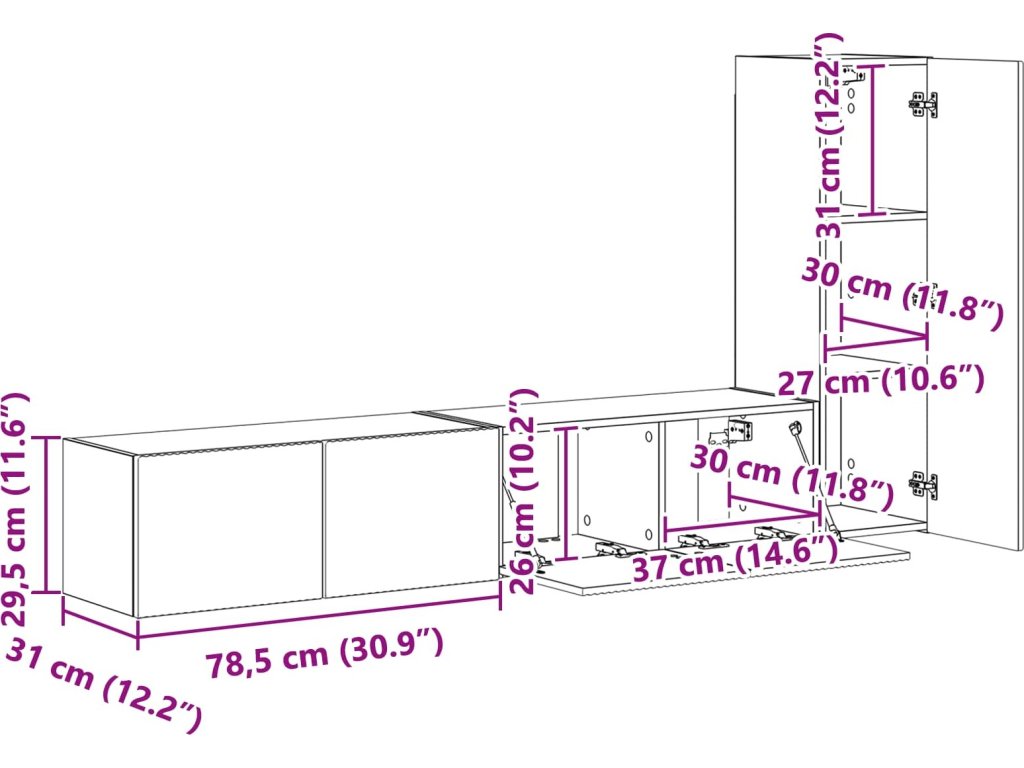 - 2 x Nástěnná skříň: 78,5 x 31 x 30 cm (D x Š x V)