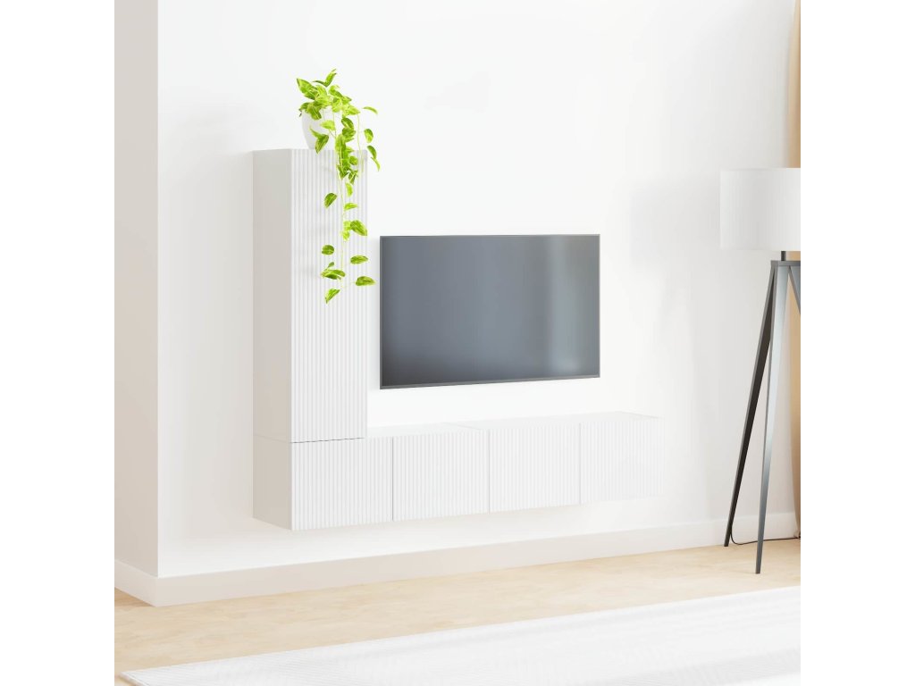 Sestava TV skříněk 3 pcs Vysoce lesklá bílá kompozitní dřevo [3408992]