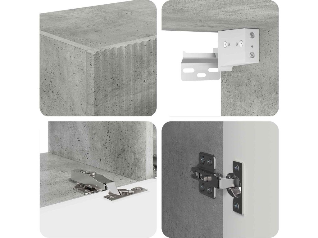 - Součásti: Tento set má čtyři nástěnné skříně různých velikostí pro flexibilní úložné řešení. Každý kousek maximálně využívá výšku a pomáhá udržet prostor organizovaný.