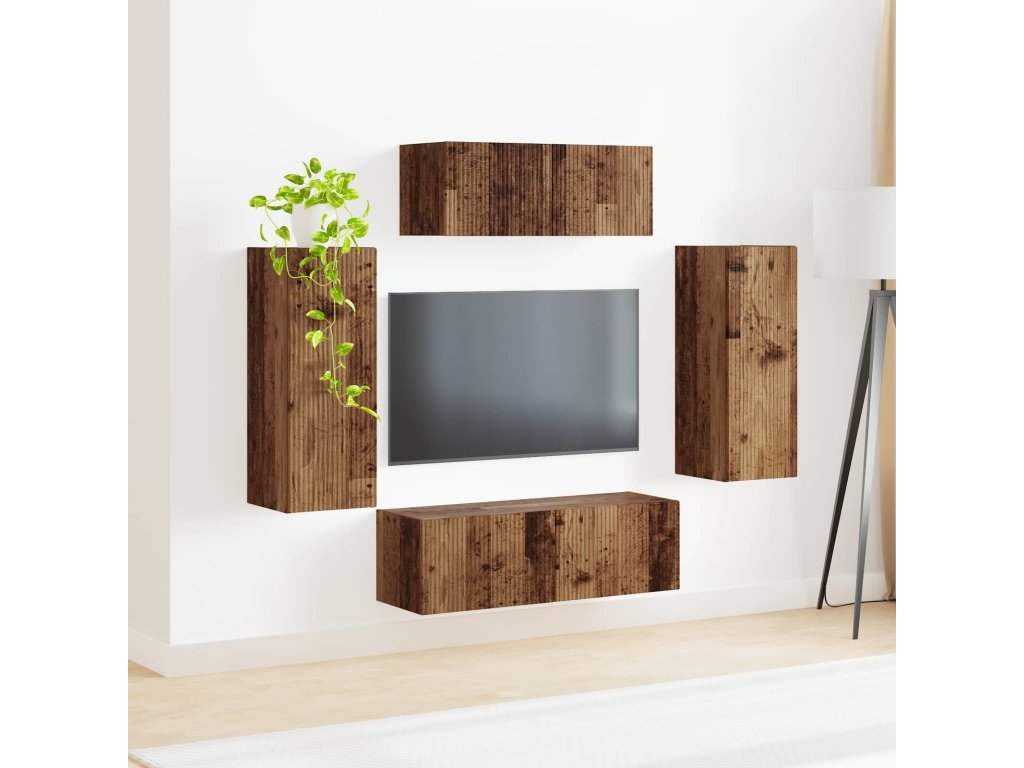 Sestava TV skříněk 4 pcs Staré dřevo kompozitní dřevo [3409166]