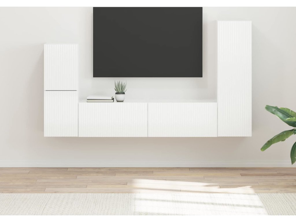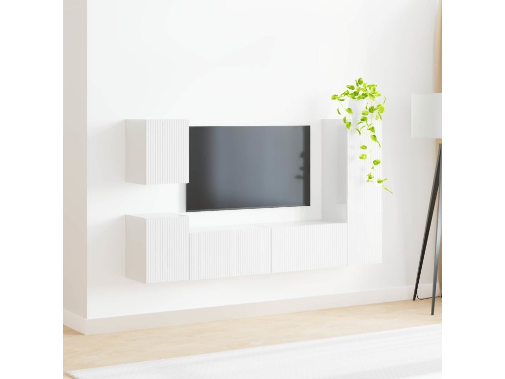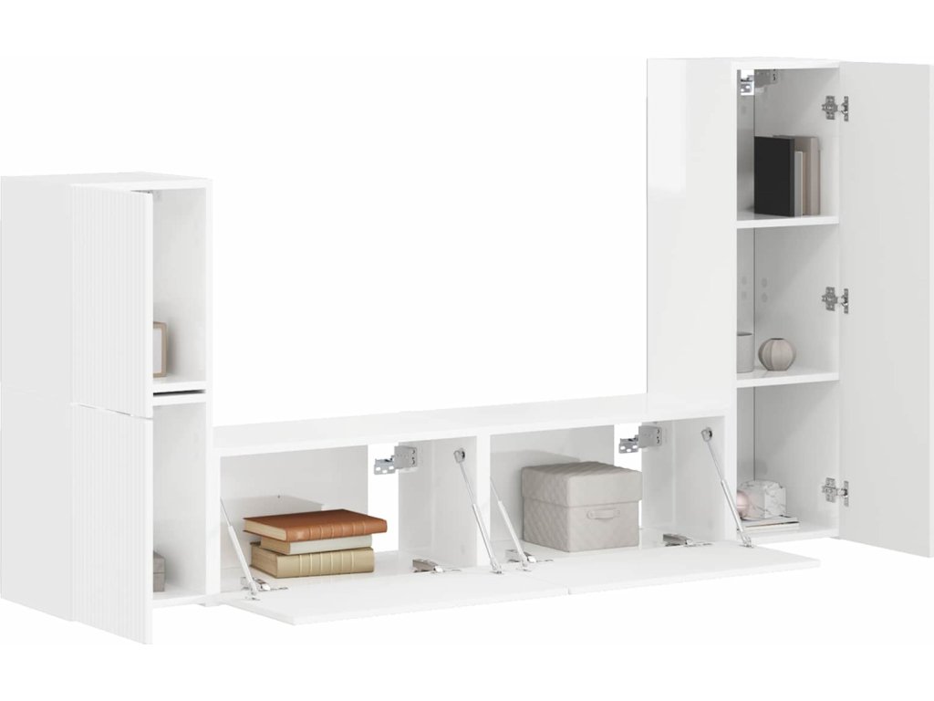 Sestava TV skříněk 4 pcs Vysoce lesklá bílá kompozitní dřevo [3409028]