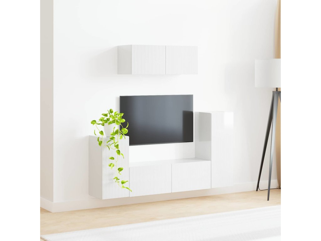 Sestava TV skříněk 4 pcs Vysoce lesklá bílá kompozitní dřevo [3409118]