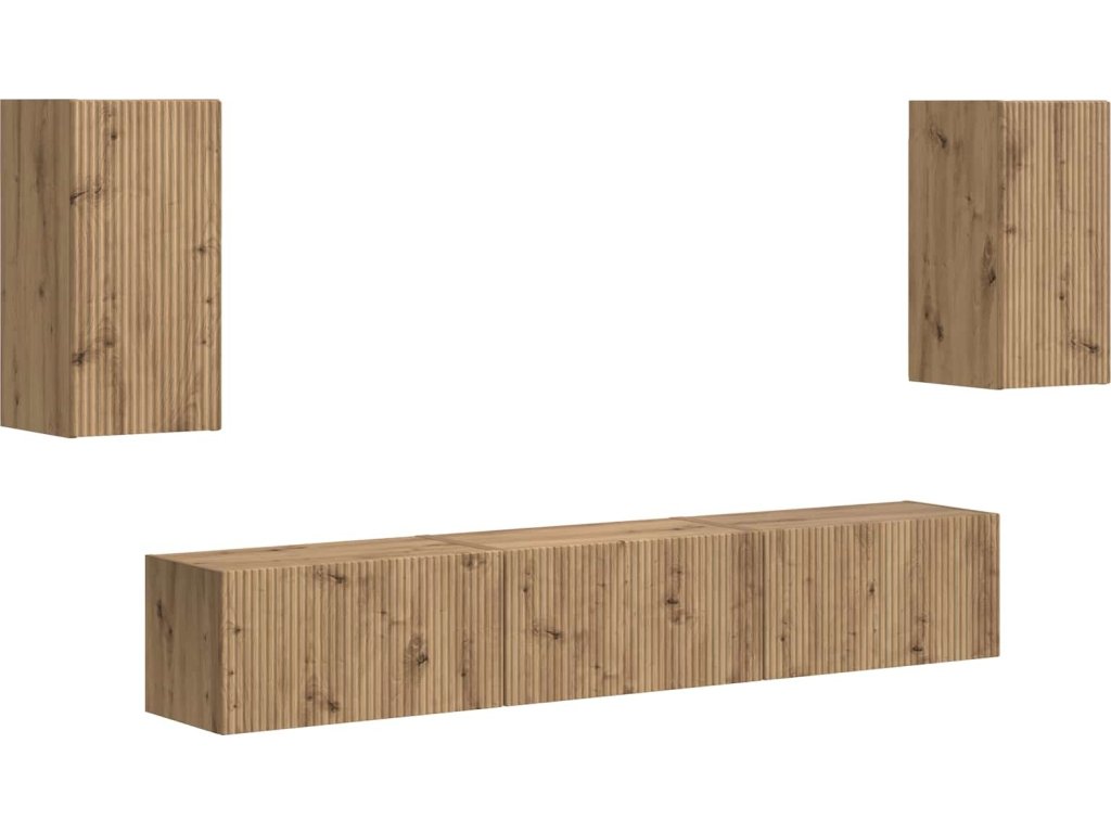Tento moderní televizní stolek je příkladem stylového interiérového designu, ideální pro minimalistický obývací pokoj. Perfektně kombinuje funkčnost a estetiku a nabízí elegantní úložné řešení pro vaše zábavní potřeby. Skříně jsou navržené tak, aby se hodily do moderních interiérů, s čistými liniemi a minimem dekorací. Oživte svůj obývák tímto setem, který udržuje prostor uspořádaný a šik. Ideální volba pro ty, kdo hledají styl a užitek ve svém nábytku, s dostatkem místa pro TV a příslušenství, což promění vaše mediální centrum v elegantní a přehledný prostor.