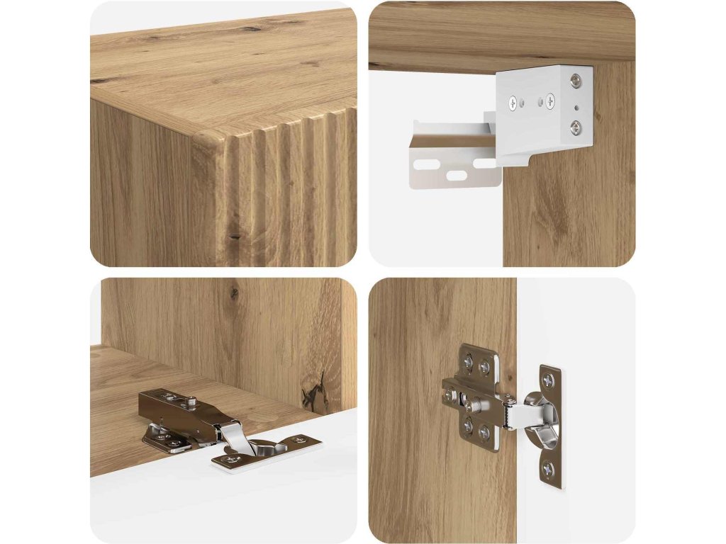 - Moderní design s důrazem na jednoduchost a užitečnost, tento skříňkový set se snadno integruje do moderních interiérů a dodává jim elegantní nádech díky štíhlému a minimalistickému stylu.