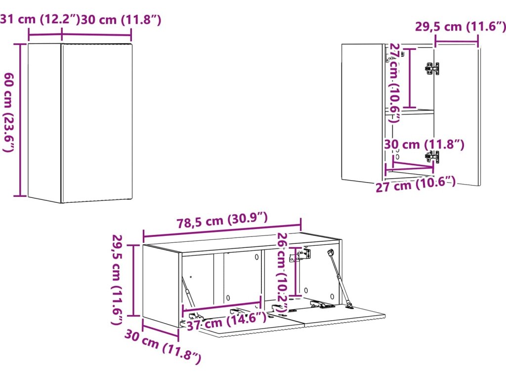 - 2 x nástěnná skříň: 98 x 31 x 29,5 cm (D x Š x V)