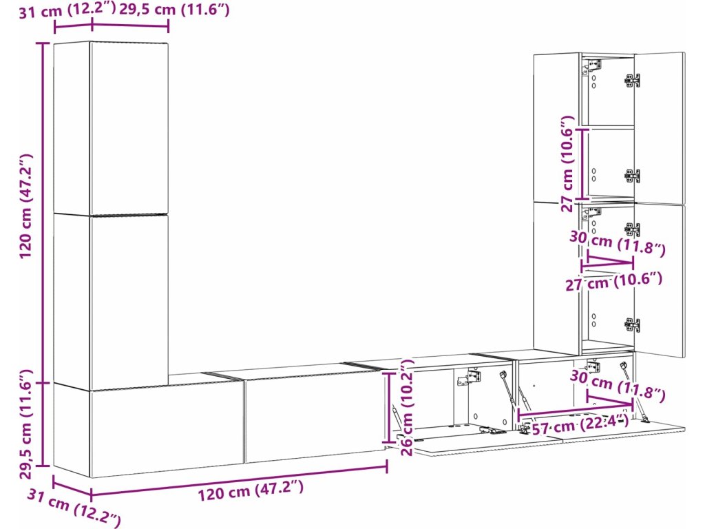 - 4 x nástěnná skříň: 31 x 30 x 60 cm (D x Š x V)
