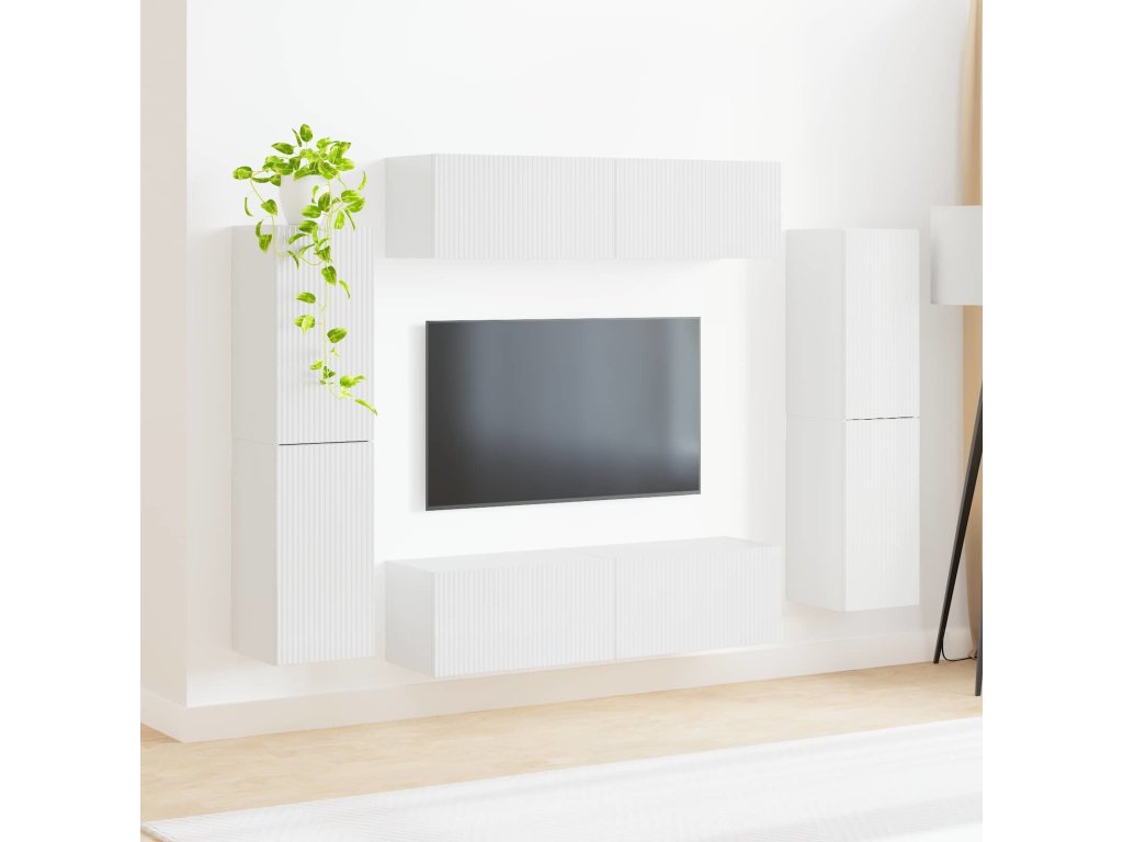 Sestava TV skříněk 8 pcs Vysoce lesklá bílá kompozitní dřevo [3409136]