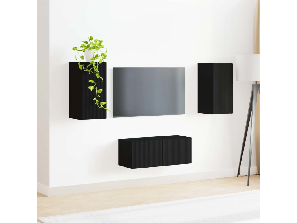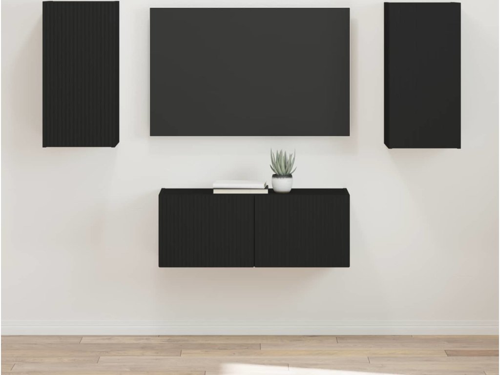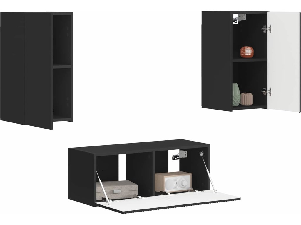 Sestava TV skříněk Nástěnný 2 pcs Černá kompozitní dřevo [3408962]