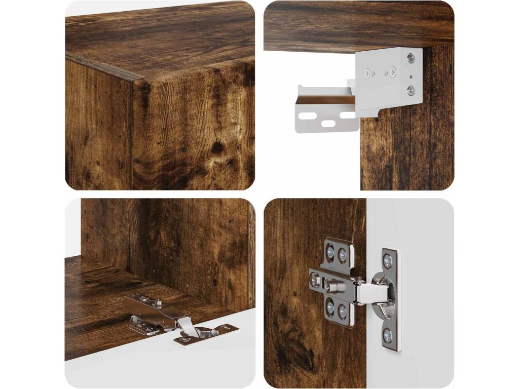 - Odolné inženýrské dřevo: Tohle kvalitní dřevo je silné a vydrží i těžčí věci. Skříňka zůstane stabilní a dobře vypadá v každém interiéru.